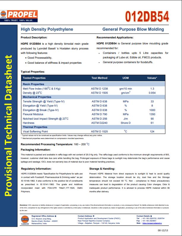⁠IOCL 012db54 Technical Data Sheet